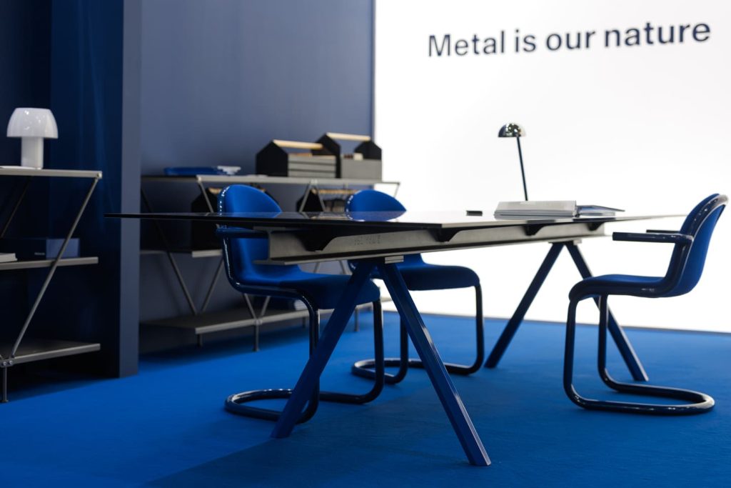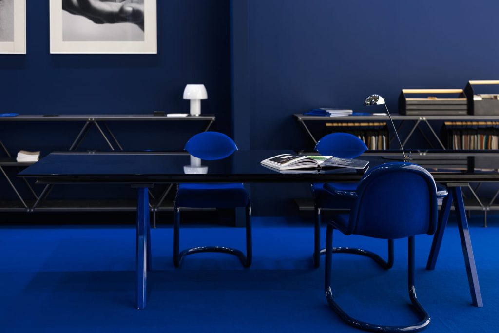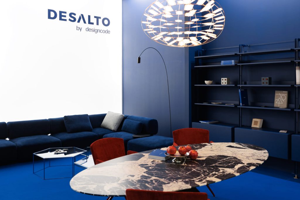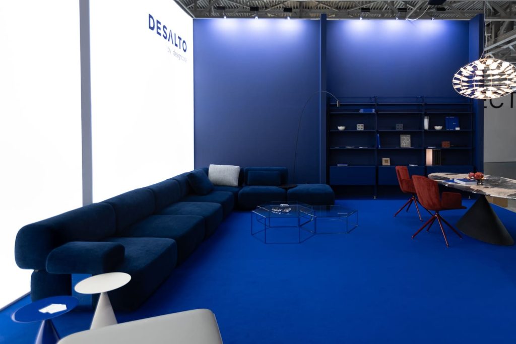 В этом году мы представили экспозицию, созданную по дизайн-проекту арт-директора Desalto Франческо Рота в фирменном синем цвете.