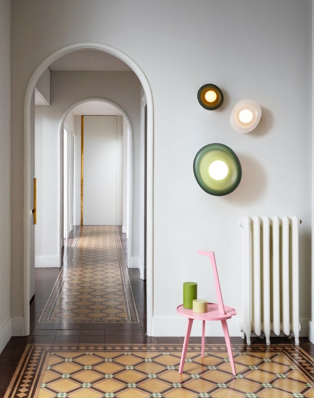 Бра Pillow от SkLO – это современный настенный светильник, в котором светящиеся стеклянные сферы заключены в изогнутую нишу матовой «подушки»-стекла. В коллекции представлены три размера и девять цветовых комбинаций, что позволяет использовать бра как по отдельности, так и в композициях. Pillow идеально подходит для спальни, ванной комнаты или общественных интерьеров, добавляя акцент света и цвета. В наличии модель medium размером 33 × 18 × 40,5 см, в отделке smokey gray frosted/celadon.