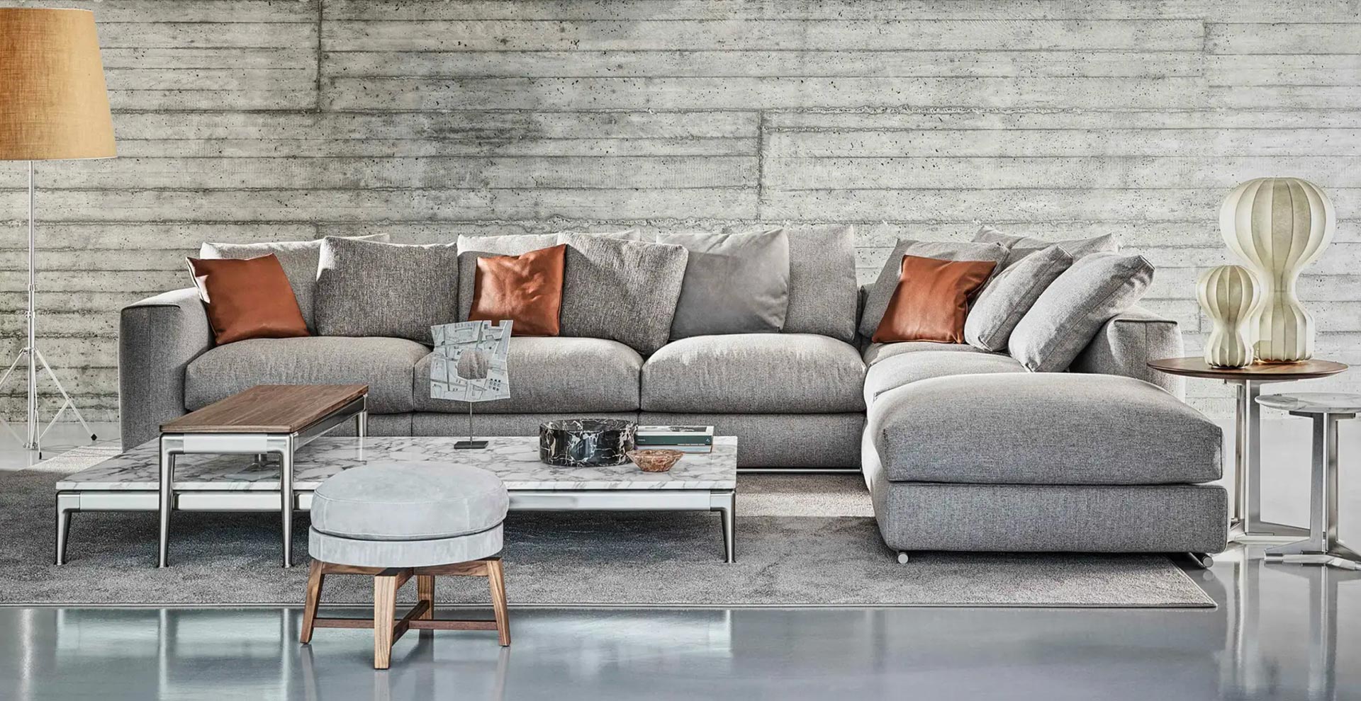 Диван Asolo создан Антонио Читтерио для Flexform. Модульная система позволяет составлять разные конфигурации. Основа — металлический каркас с прочным покрытием. Съемные чехлы делают из ткани или натуральной кожи. Наполнитель сидений — пенополиуретан высокой плотности. Он обеспечивает упругую поддержку. Элементы сшиты вручную для точной посадки. Дизайн сочетает мягкие подушки и тонкие металлические ножки.