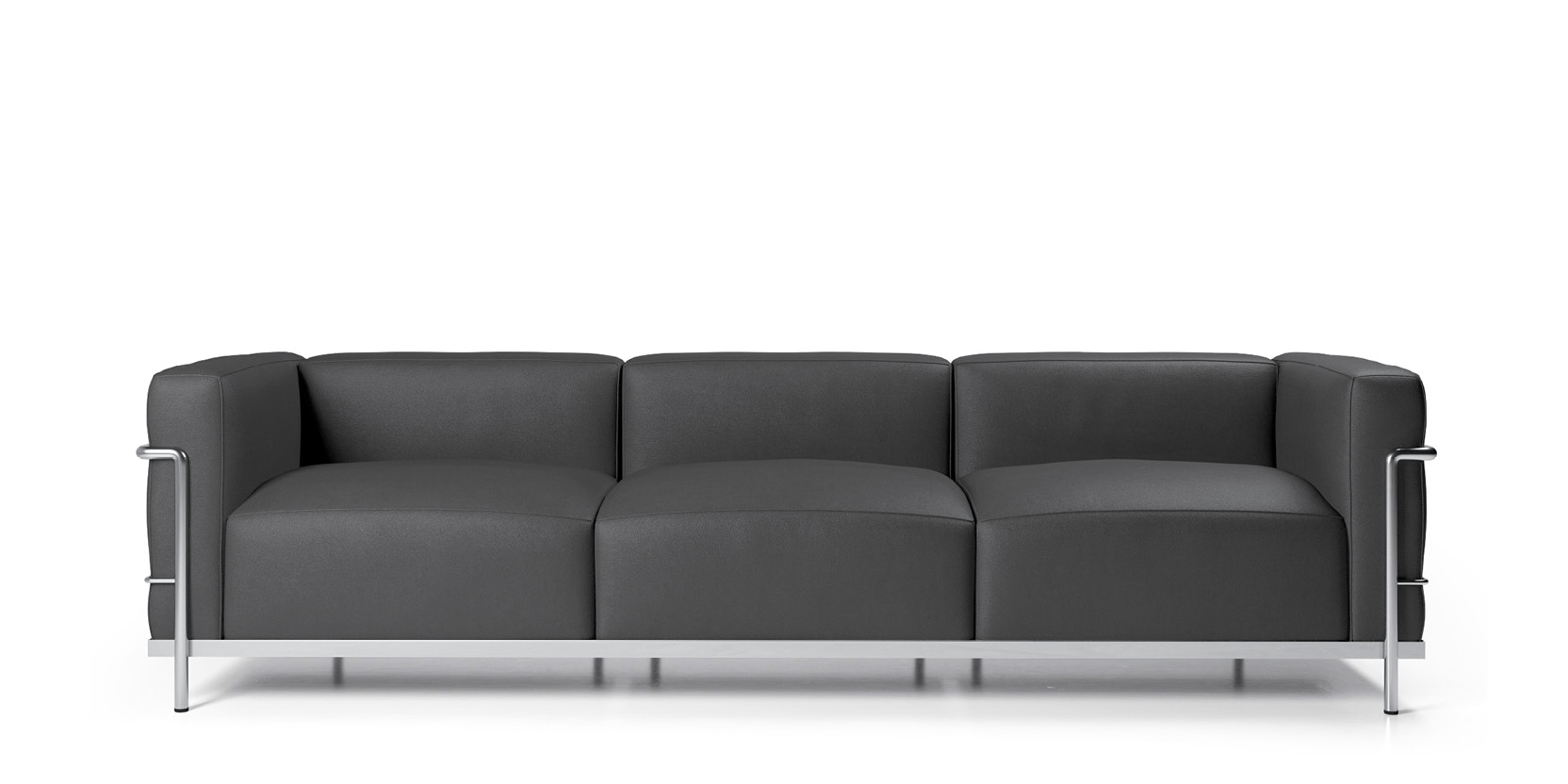 Трехместная модель Fauteuil Grand Confort, Grand Modèle воплощает концепцию разделения несущей конструкции и наполнения, разработанную в 1928 году. Стальной каркас, окрашенный или хромированный, служит визуально легкой корзиной, в которой размещаются объемные мягкие элементы. В отличие от более компактной версии LC2, эта модель предлагает более широкую и низкую посадку, ориентированную на расслабленный отдых. Производство сочетает индустриальные методы с ручным трудом: стальные трубы изгибают и сваривают, тщательно зашлифовывая швы для получения единого контура. Подушки наполнены пенополиуретаном высокой плотности и дополнены слоем пуха для анатомической поддержки. Съемная обивка из кожи или ткани фиксируется на каркасе, подчеркивая архитектурную логику предмета. Каждый диван имеет гравировку с серийным номером и логотипом Cassina, подтверждающую его происхождение.