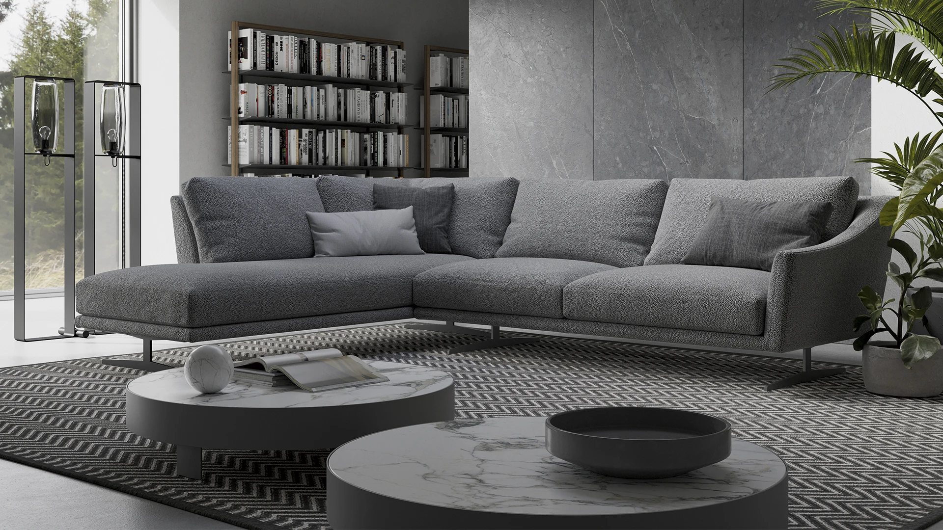 Диван Skid, спроектированный Джузеппе Вигано для фабрики Bonaldo, отличается легким визуальным образом благодаря тонкому металлическому основанию. Конструкция ножек приподнимает сиденье над полом, создавая ощущение воздушности и облегчая процесс уборки. Металлическая база доступна в различных вариантах отделки: окрашенный матовый металл или глянцевые покрытия, что позволяет адаптировать модель под конкретный интерьер.