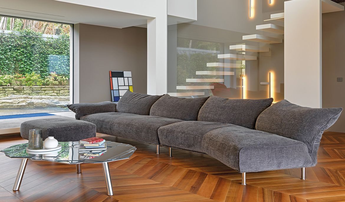 Standalto отличается мягкостью, глубокой посадкой и воздушной эстетикой. Диван легко адаптируется к пространству, позволяя создавать различные композиции. Множество вариантов отделок делает его идеальным выбором для премиальных интерьеров и ценителей роскошного, интеллектуального комфорта.