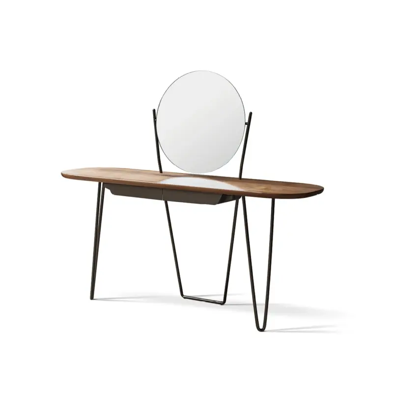 Гардероб оснащён металлическим каркасом и предлагает широкий выбор панелей для дверей: прозрачное стекло, бронзовое отражающее стекло, цветное лакированное стекло, а также панели с декоративной тканевой обивкой. Такие варианты исполнения позволяют создать эффект витрины, придавая конструкции лёгкость и современный вид.
