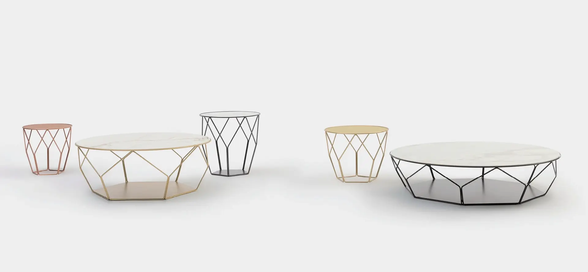 Журнальные столики Arbor — результат сотрудничества бренда Bonaldo и дизайнерского дуэта Дондоли и Поччи. В основе концепции лежит природный образ: конструкция напоминает стилизованный цветочный венчик. Основание сформировано из металлических «лепестков», которые плавно поднимаются вверх, поддерживая круглую столешницу. Такая геометрия придает предмету визуальную легкость, сохраняя при этом устойчивость.