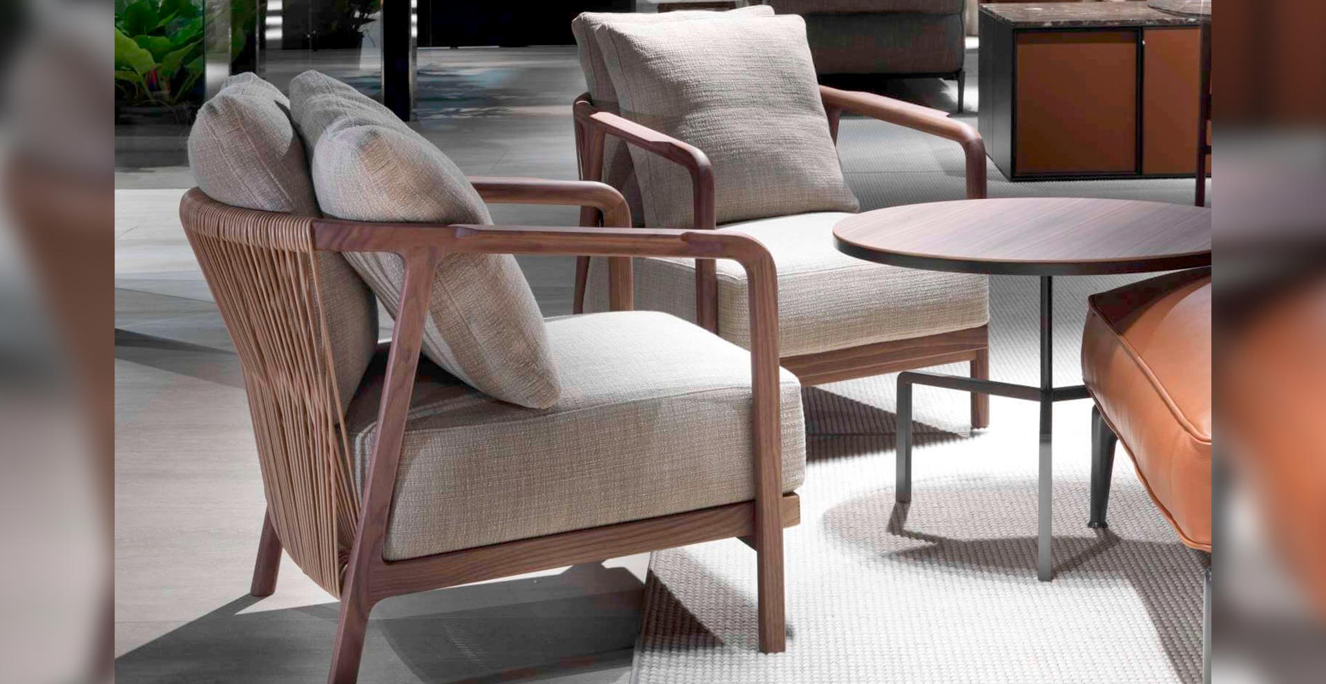 Кресло Crono разработал Антонио Читтерио, объединив классические столярные традиции с современным комфортом. Каркас выполнен из массива дерева, демонстрируя мастерство обработки материала и внимание к деталям. Характерная особенность модели — спинка с оригинальным плетением из кожаного шнура, которое придает конструкции визуальную легкость и текстурную глубину. Сиденье наполнено вспененным полиуретаном для упругости, а дополнительный комфорт обеспечивает мягкая подушка с набивкой из натурального пуха. Обивка доступна в текстиле или коже, чехлы полностью съемные, что упрощает уход за изделием. Благодаря сбалансированным пропорциям и сочетанию дерева с кожей, модель гармонично вписывается в жилые пространства.