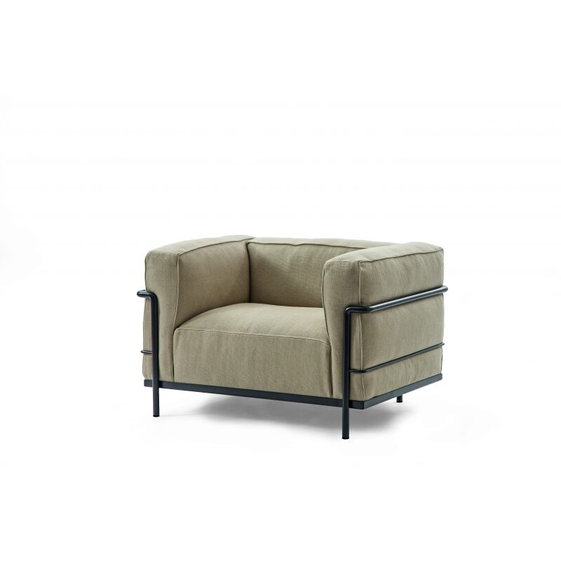 Кресло в наличии выполнено в обивке из ткани Lario 107, а плетение из кожи Natural Velour 97. Размеры Iole: ширина 80 см, глубина 86 см, высота 70 см.