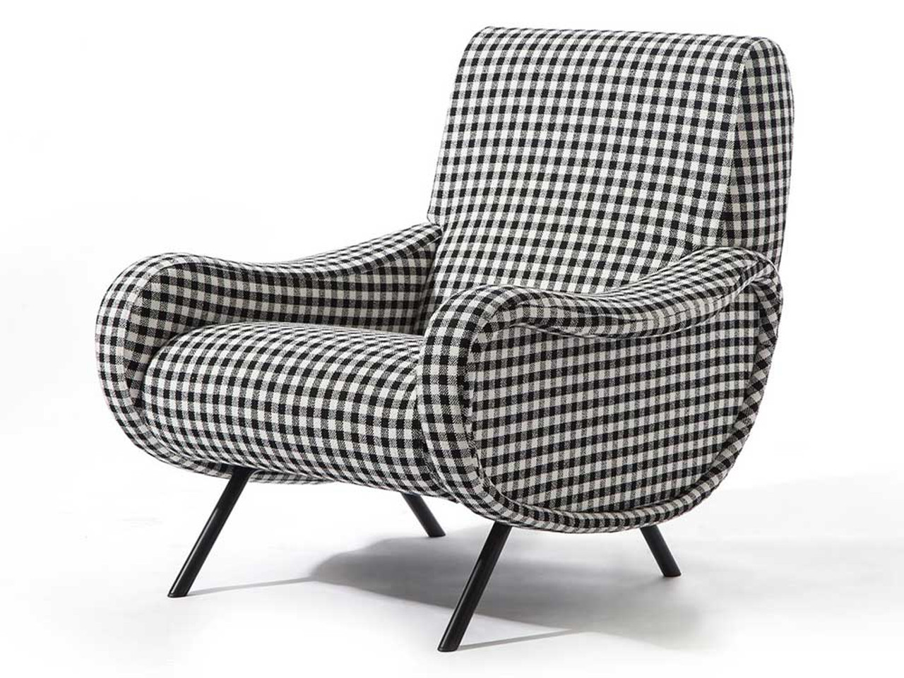 Кресло Lady, спроектированное Марко Дзанузо в 1951 году, стало важной вехой в истории промышленного дизайна благодаря инновационному методу производства. В версии Iconic Edition компания Cassina сохраняет оригинальную эстетику, используя современные материалы. Конструкция модели предполагает отдельное изготовление сиденья, спинки и подлокотников, которые затем собираются в единое целое. В основе кресла лежит каркас из трубчатой стали с эластичными ремнями, обеспечивающими необходимую амортизацию. Наполнитель выполнен из пенополиуретана различной плотности и полиэстерной ваты, что позволяет мебели долго сохранять форму и обеспечивает комфортную посадку. Обивка Iconic Edition отличается характерным рисунком в черно-белую клетку, подчеркивающим геометричность форм. Металлические ножки интегрированы в каркас, создавая визуальную легкость силуэта.