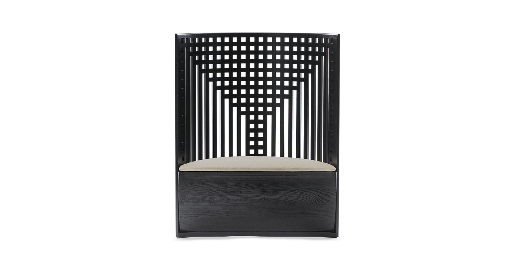 Кресло Willow — переиздание знаковой модели 1904 года, изначально созданной для чайных комнат Willow Tea Rooms в Глазго. Дизайн отражает геометрический стиль Чарльза Ренни Макинтоша и эстетику шотландского модерна. Характерная особенность предмета — высокая спинка в виде изогнутой решетки, которая визуально очерчивает пространство вокруг сидящего. Каркас выполнен из массива ясеня и окрашен черной морилкой, что подчеркивает графичность силуэта и текстуру древесины. Под откидным сиденьем расположен скрытый ящик для хранения вещей — функциональная деталь, предусмотренная автором в оригинальном проекте. Мастера Cassina с точностью воспроизводят столярные соединения и пропорции исторического образца, превращая его в выразительный элемент интерьера для гостиной или кабинета.