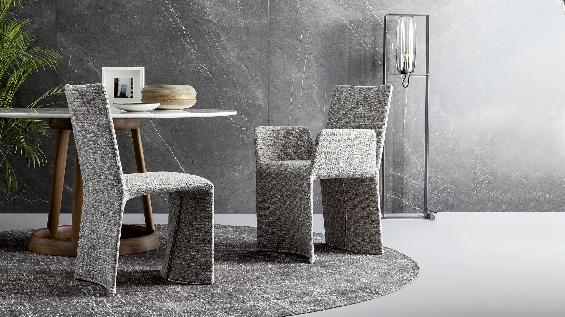 Стул Ketch разработан студией Bartoli Design для бренда Bonaldo. Модель отличается сплошной формой, где сиденье плавно переходит в спинку, напоминая надутый ветром парус. В основе конструкции лежит надежный стальной каркас, обеспечивающий устойчивость и долговечность. Комфорт посадки гарантирует упругий плотный наполнитель, который сохраняет форму и не деформируется со временем. Модель выпускают в двух модификациях: стандартный стул без подлокотников и более широкая версия, обеспечивающая дополнительную поддержку. Для обивки используют ткань или натуральную кожу, что позволяет интегрировать предмет в интерьеры разной стилистики.