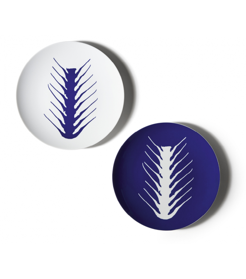 Коллекция посуды Le Monde de Charlotte Perriand от Cassina разработана в сотрудничестве с Ginori 1735 и отражает творческое видение знаменитого архитектора. Сервиз выполнен из высококачественного белого фарфора, украшенного узорами насыщенного кобальтового цвета. Дизайн основан на фотографиях Шарлотты Перриан, сделанных в 1930-х годах: геометрические линии и абстрактные формы перекликаются с природными мотивами. Каждая тарелка проходит тщательную ручную обработку краев и полировку поверхности, что обеспечивает долговечность керамики при ежедневном использовании. Набор включает различные форматы: десертные, глубокие суповые, классические плоские и подстановочные тарелки. Контраст чистой белизны материала и графичного декора создает выразительный визуальный ритм на столе. Этот сервиз объединяет функциональность модернизма с ремесленными традициями производства фарфора.
