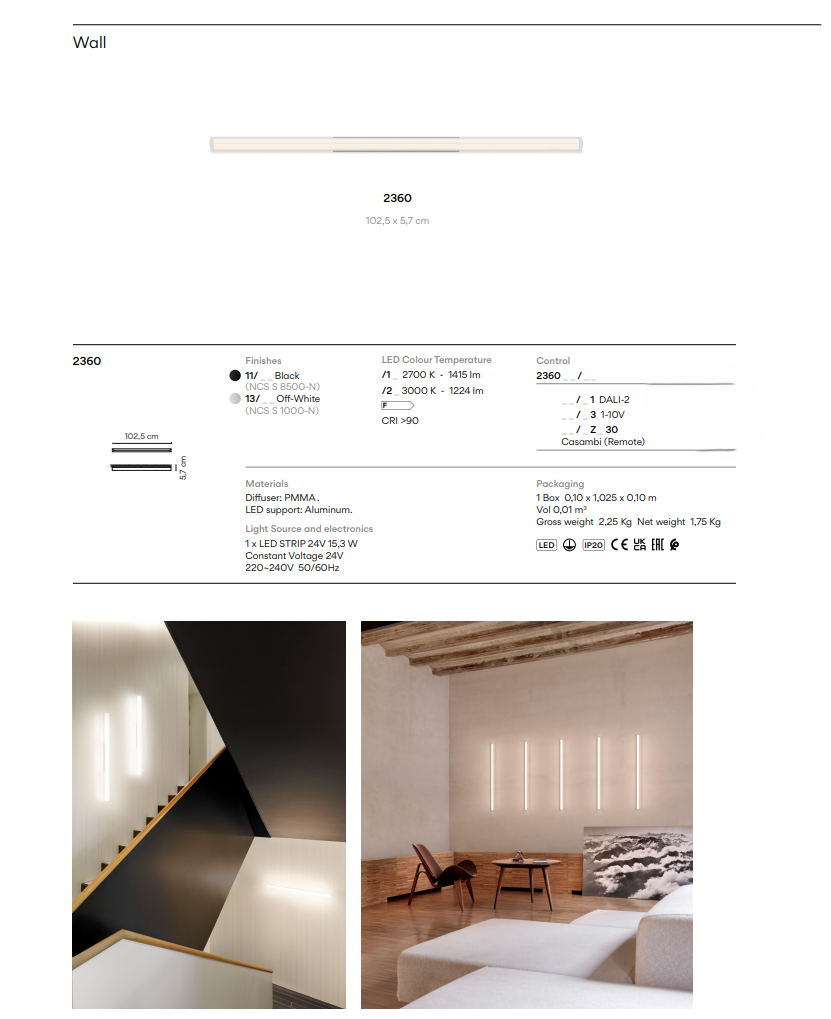 Настенный светильник Halo от Vibia, созданный дизайнером Мартином Асуa, воплощает гармонию света и материи. Его опаловый диффузор из PMMA (акрилового стекла) создаёт эффект парящего света, скрывая источник и наполняя интерьер мягким сиянием. Светильник доступен в черной и белой отделках. Оснащён встроенным LED-модулем 24V (15,3 W) с температурой света 2700K или 3000K, высоким индексом цветопередачи CRI >90 и вариантами управления DALI-2, 1-10V или Casambi. Размер модели — 102,5 × 5,7 см.
