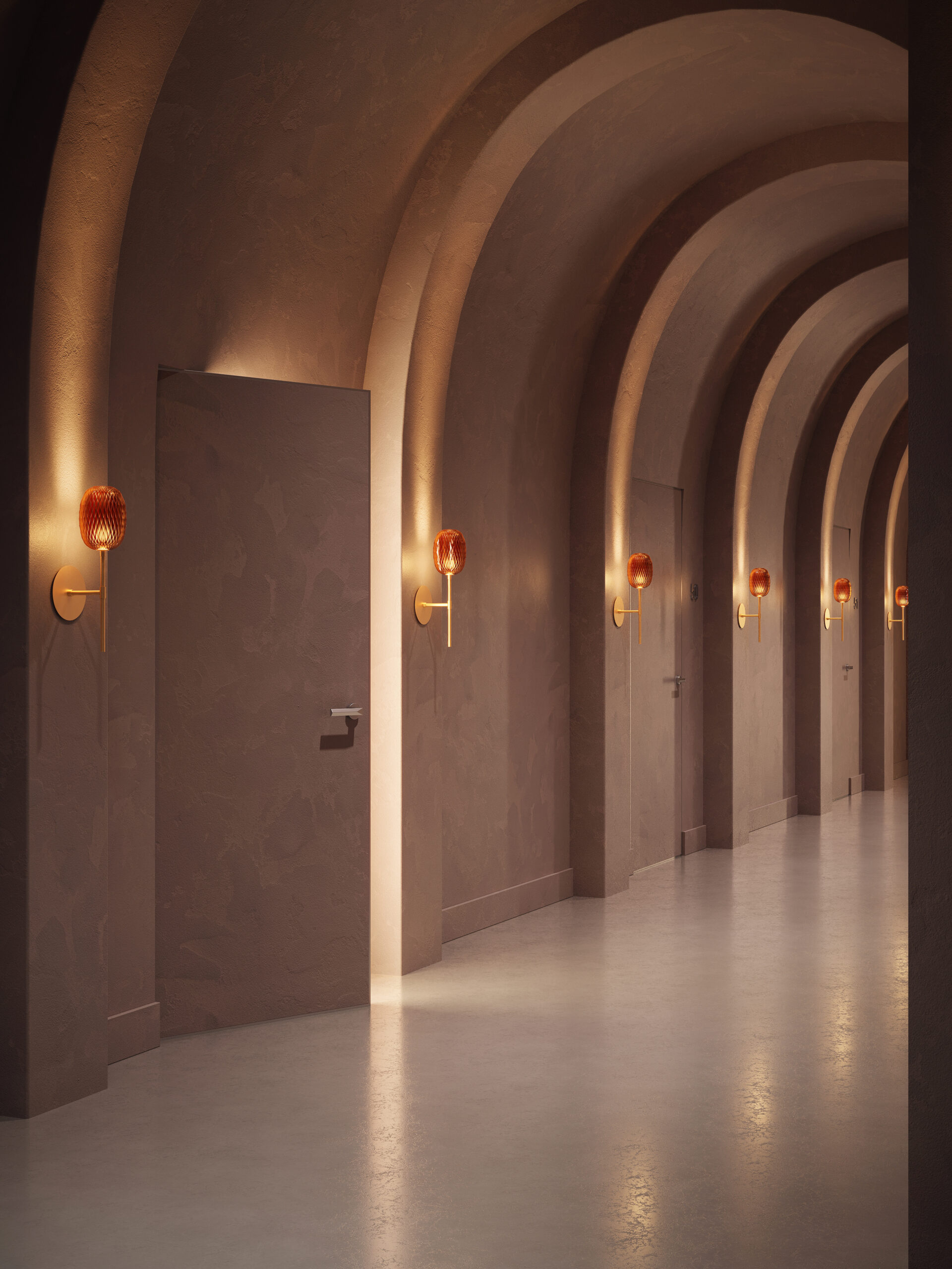 Настенный светильник Metamorphosis Large Amber от Booma, дизайн Рони Плесл, выполнен из вручную выдувного и точно огранённого хрусталя янтарного оттенка. После выдувания каждая форма дорабатывается ручной резкой, создавая сложную игру света, объёма и фактуры. Благодаря полностью ручному производству интенсивность цвета и градиенты могут незначительно варьироваться, что подчёркивает уникальность каждого экземпляра. Светильник подходит для акцентного освещения жилых и общественных интерьеров.