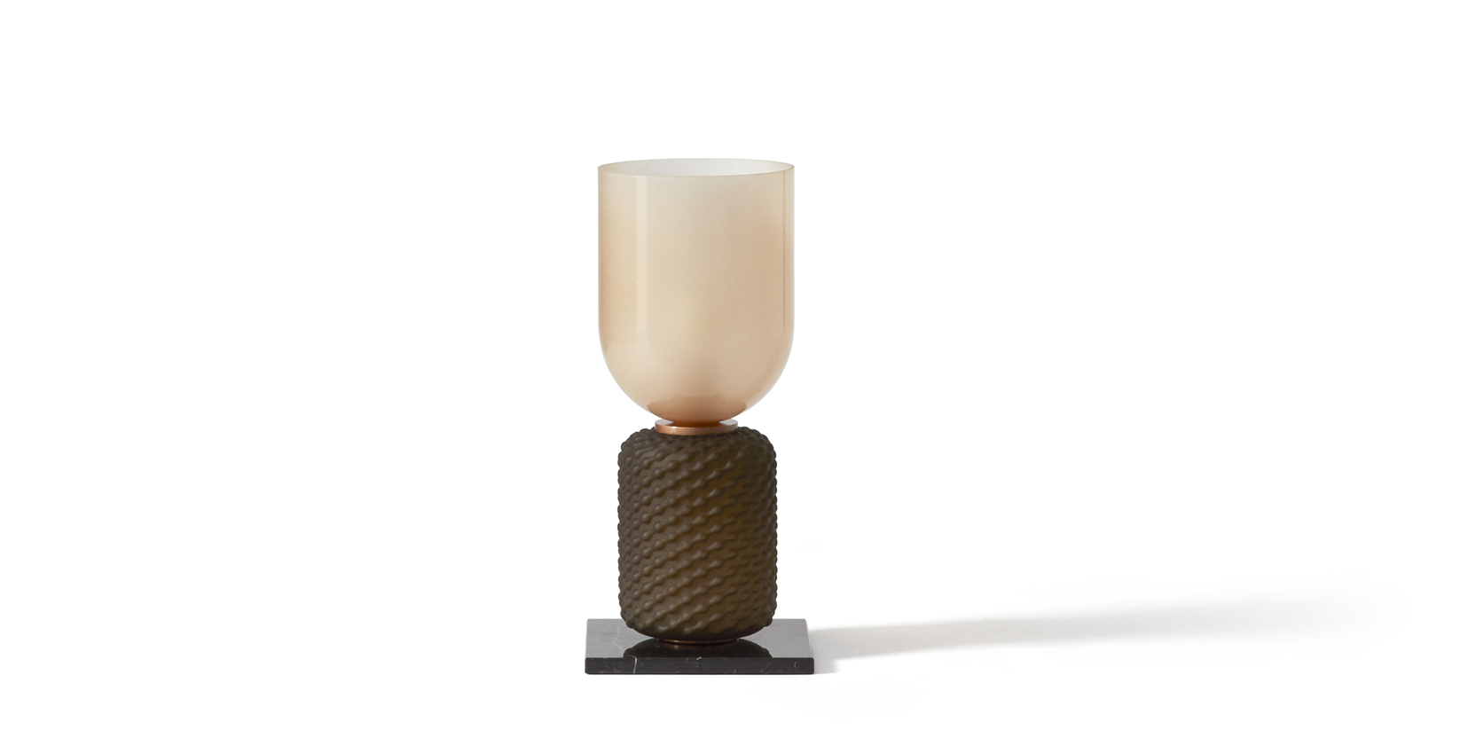 Настольная лампа Ficupala демонстрирует характерный для бренда Cassina подход к работе с материалами. Основание светильника выточено из цельного куска натурального мрамора, придающего конструкции устойчивость и текстурную глубину. Каменный рисунок с уникальными прожилками делает каждый экземпляр визуально интересным. Верхняя часть выполнена из стекла, которое может быть прозрачным или матовым, в зависимости от выбранной конфигурации. Абажур мягко рассеивает свет, создавая комфортное освещение для жилых зон. Благодаря функции диммирования, интенсивность света легко регулируется под настроение или задачи. Ficupala гармонично сочетает холодную твердость камня и прозрачную легкость стекла, вписываясь как в строгие минималистичные, так и в эклектичные интерьеры.