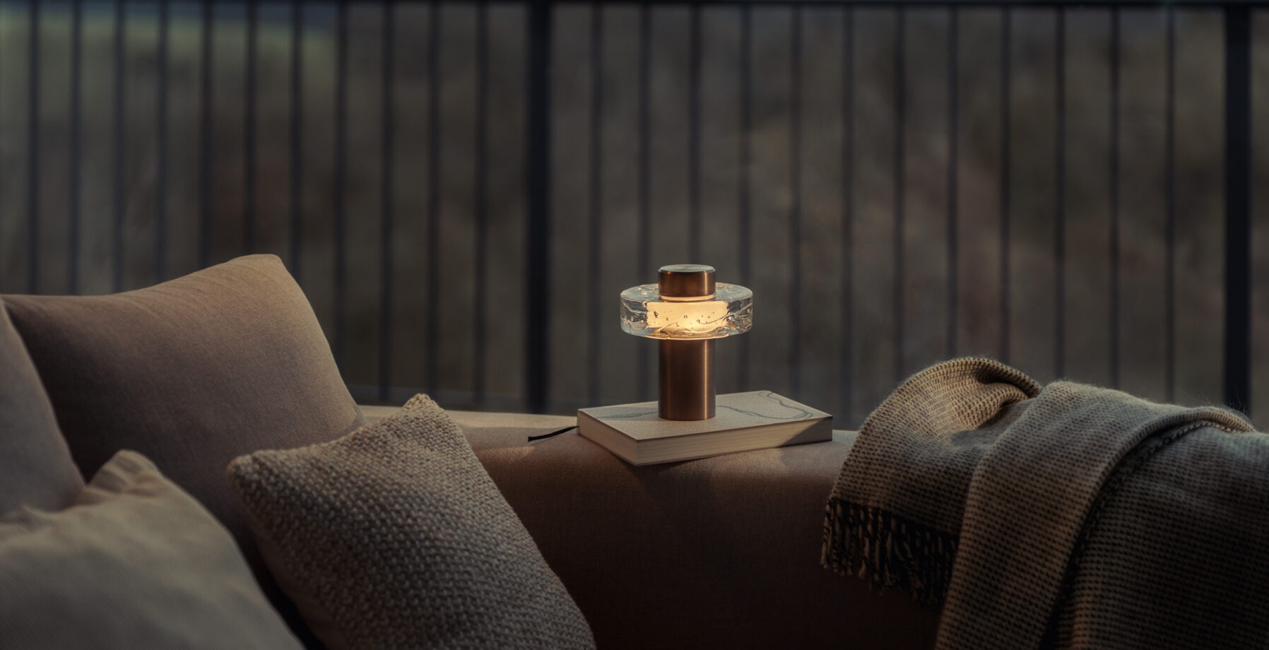 Портативный настольный светильник Ollo от BOMMA, дизайнер Вацлав Млынарж, — выразительный объект современного дизайна из выдувного бессвинцового стекла. Скульптурное стеклянное кольцо с деликатными пузырьками создаёт мягкое атмосферное освещение, а регулируемая цветовая температура позволяет менять настроение — от тёплого уютного света до более яркого рабочего. LED-модуль с высоким CRI обеспечивает качественную передачу оттенков, сенсорное управление отвечает за плавное диммирование. Аккумулятор обеспечивает до 8–10 часов работы при средней яркости, зарядка через USB-C делает светильник удобным для интерьера и террасы.