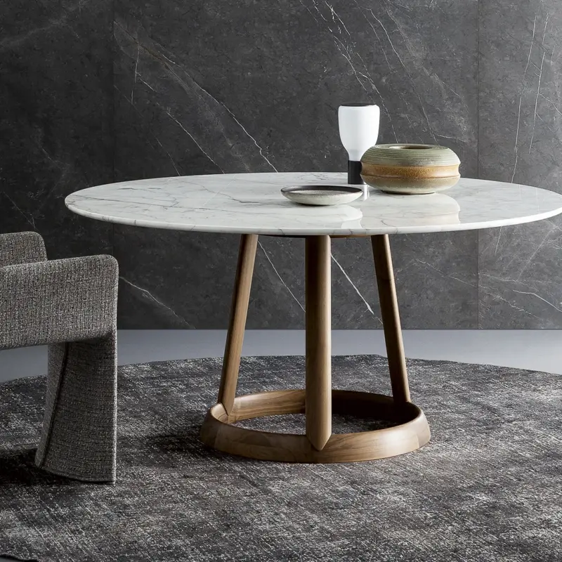 Стол Kauri Riflessi Millenari от Riva 1920 объединяет в себе древние материалы и современный дизайн. Проект создан в сотрудничестве с художником Хелидоном Джиджей. Его работы изучают взаимодействие света, формы и отражения. Эта философия проявляется в столе, где скульптурная форма сочетается с природной красотой.