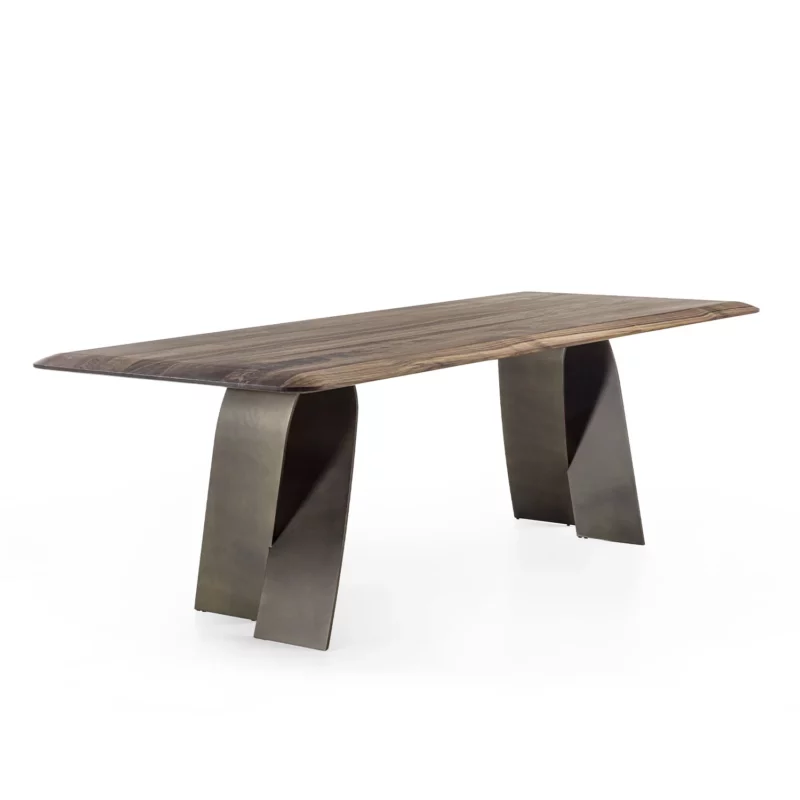 Стол выполнен с уважением к природному материалу и вниманием к деталям. Столешница собрана из цельнодеревянных реек. Она показывает уникальный рисунок текстуры массива дерева. Массивные ножки также выполнены из цельного дерева. Они обеспечивают надежность и устойчивость. Конструкция подчеркивает мастерство итальянских ремесленников.
