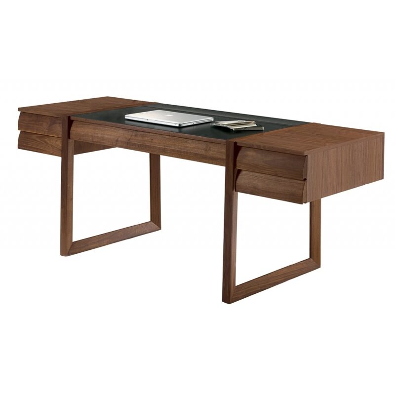 Письменный стол Gauss от Bonaldo, спроектированный Мауро Липпарини в 2020 году, строится на геометрической четкости и контрасте материалов. В основе конструкции лежит металлический каркас с характерными изогнутыми ножками, которые обеспечивают устойчивость и формируют узнаваемый силуэт. Столешница изготовлена из шпонированной древесины с сохранением природной текстуры материала.