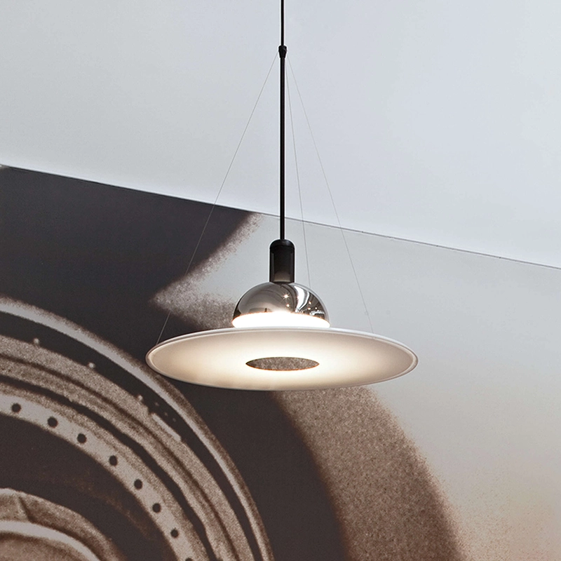 Подвесной светильник 57.20, разработанный Омером Арбелем, продолжает исследование свойств материалов. В основе концепции лежит сложная технология производства: в расплавленное боросиликатное стекло вводят пузырьки воздуха, а затем погружают его в жидкую фарфоровую массу. После остывания фарфор образует фактурный слой, который мягко рассеивает свет, скрывая источник внутри.