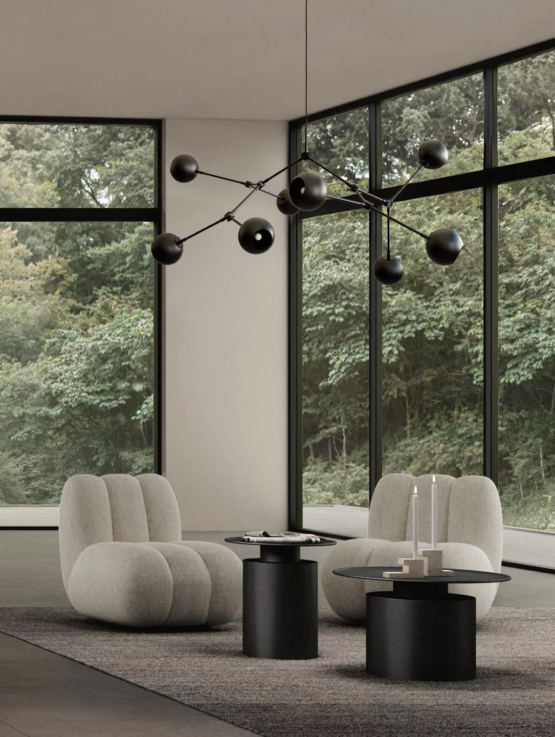 Подвесной светильник Globe от 101 Copenhagen, созданный дизайнерами Кристианом Софусом Хансеном и Томми Хюльдалем, представляет собой современное переосмысление культовой люстры Drop Chandelier. Новая версия с гладким сферическим плафоном из металла стала данью уважения геометрическим формам 1980-х годов, сочетая лаконичность линий и выразительный архитектурный стиль. Конструкция включает 14 регулируемых металлических лучей, которые позволяют изменять форму и направление света, создавая как симметричные, так и динамичные асимметричные композиции. Выполненный из железа в отделке Burned Black и дополненный тканевым чёрным кабелем, светильник органично вписывается в современные и эклектичные интерьеры. Размер: 150×120×85 см.