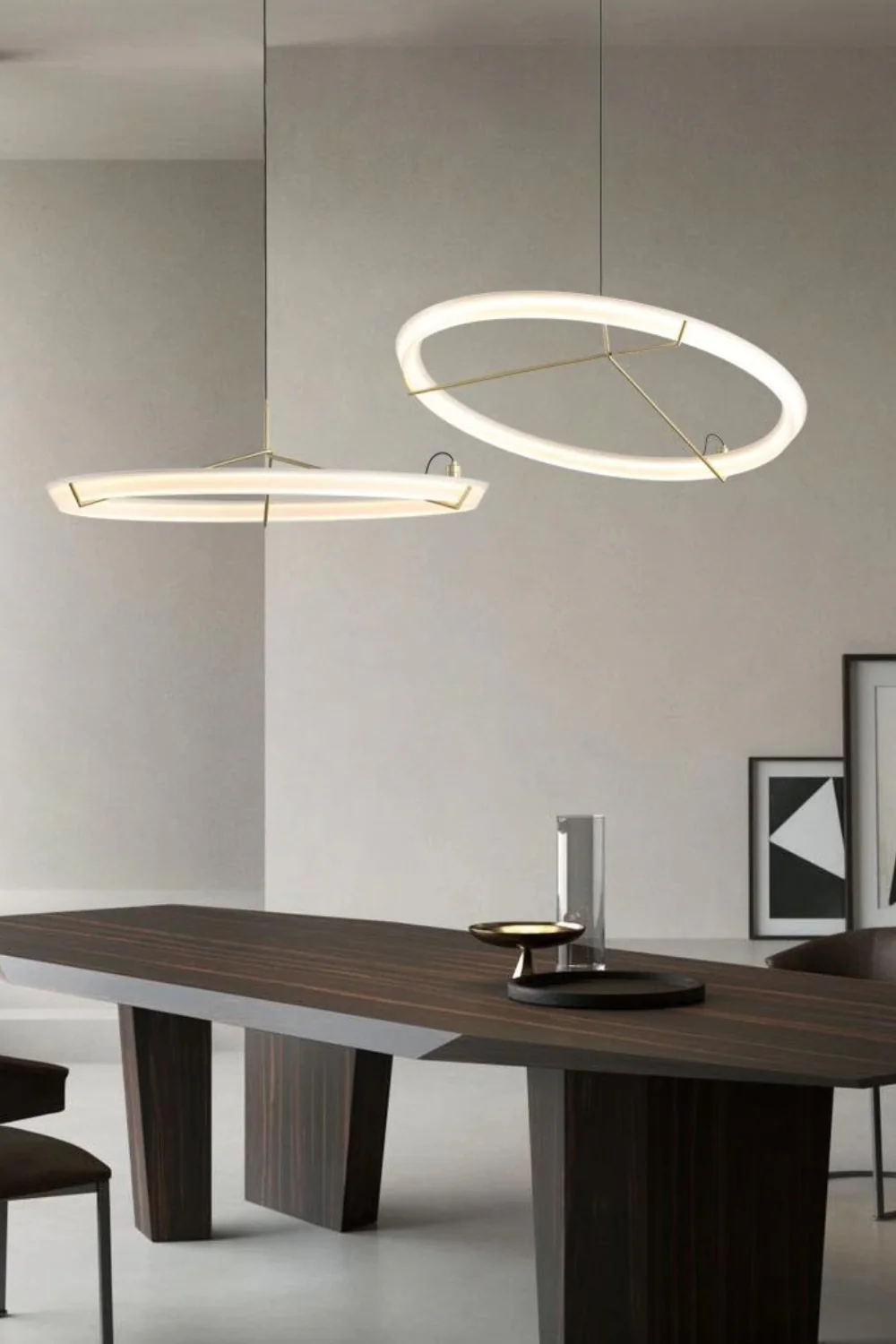 Круглые подвесные светильники Halo Jewel от Vibia, созданные дизайнером Мартином Асуа, представляют собой изящные световые кольца, где свет воспринимается как драгоценный элемент интерьера. Модели отличаются формой: одно кольцо располагается строго горизонтально, другое — под наклоном, создавая динамичный акцент в пространстве. Диаметр светильников составляет 56,3 см, а максимальная длина подвеса достигает 200 см, что позволяет адаптировать их к помещениям разной высоты. Тонкие подвесные каркасы подчёркивают невесомость формы, а встроенная LED-технология создаёт мягкое сияние, которое наполняет пространство атмосферой уюта и гармонии. Коллекция представлена в отделках чёрный матовый и золото, что подчёркивает её элегантность и позволяет гармонично сочетать светильники с современными интерьерами.