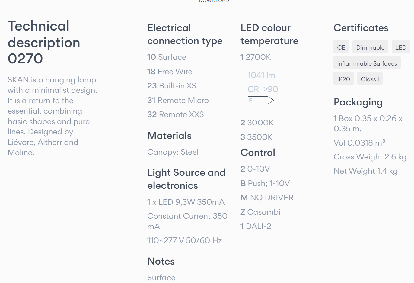Подвесной светильник Skan 0270 от Vibia в деталях