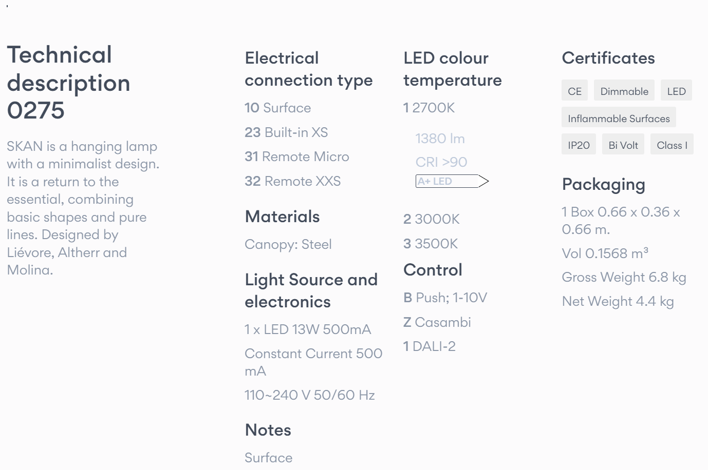 Подвесной светильник Skan 0275 от Vibia в деталях