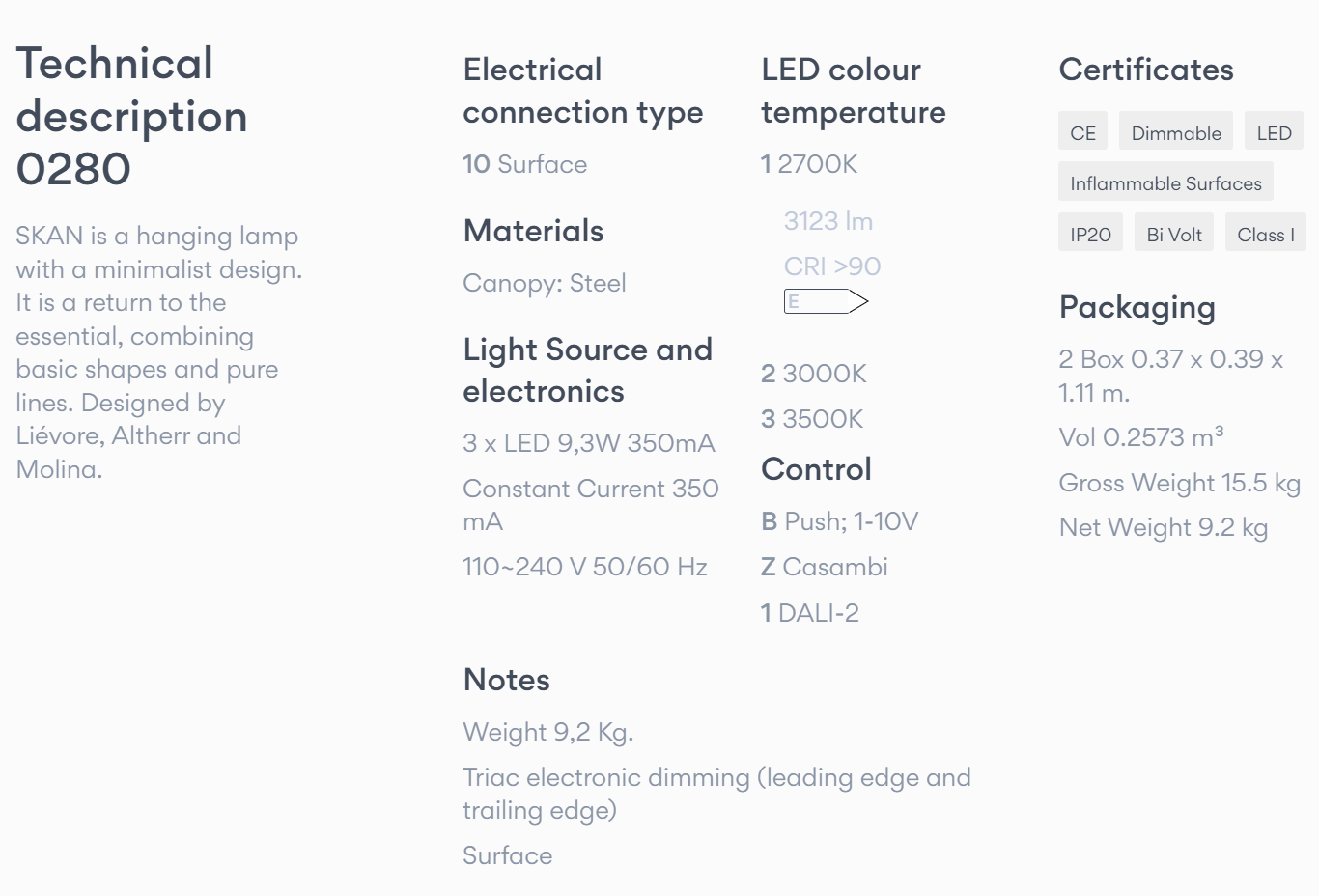 Подвесной светильник Skan 0280 от Vibia в деталях