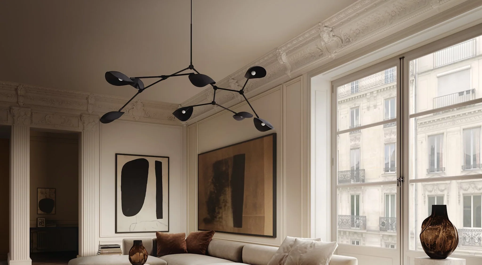 Светильники из коллекции Stingray от 101 Copenhagen вдохновлены природными формами, напоминающими ската, сочетая мягкие изгибы и чёткие линии. Дизайн разработан Кристианом Софусом Хансеном и Томми Хюльдалем. Светильник Stingray Burned Black состоит из почти парящих плафонов из металла в отделке Burned Black, которые скрывают или открывают источник света в зависимости от угла обзора, создавая гибкую и художественную световую атмосферу. Размеры светильника Stingray Grande 177 х 142 х 70 см с длиной подвеса до 500 см