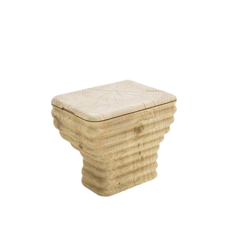 Конструкцию шкафа выполняют из цельного дерева и массивной блочной доски, что придает ему успокаивающую цельность. Скругленные кромки и мягкие очертания делают его визуально легким. Шкаф оснащен двумя распашными дверцами с фигурными ручками, утопленными в массив. Внутреннее пространство включает две просторные полки и три ящика. Ящики собирают по старинной технологии «ласточкин хвост», что гарантирует прочность и долговечность. Этот предмет мебели создан для интерьеров, ценящих сдержанную элегантность и осмысленную простоту.