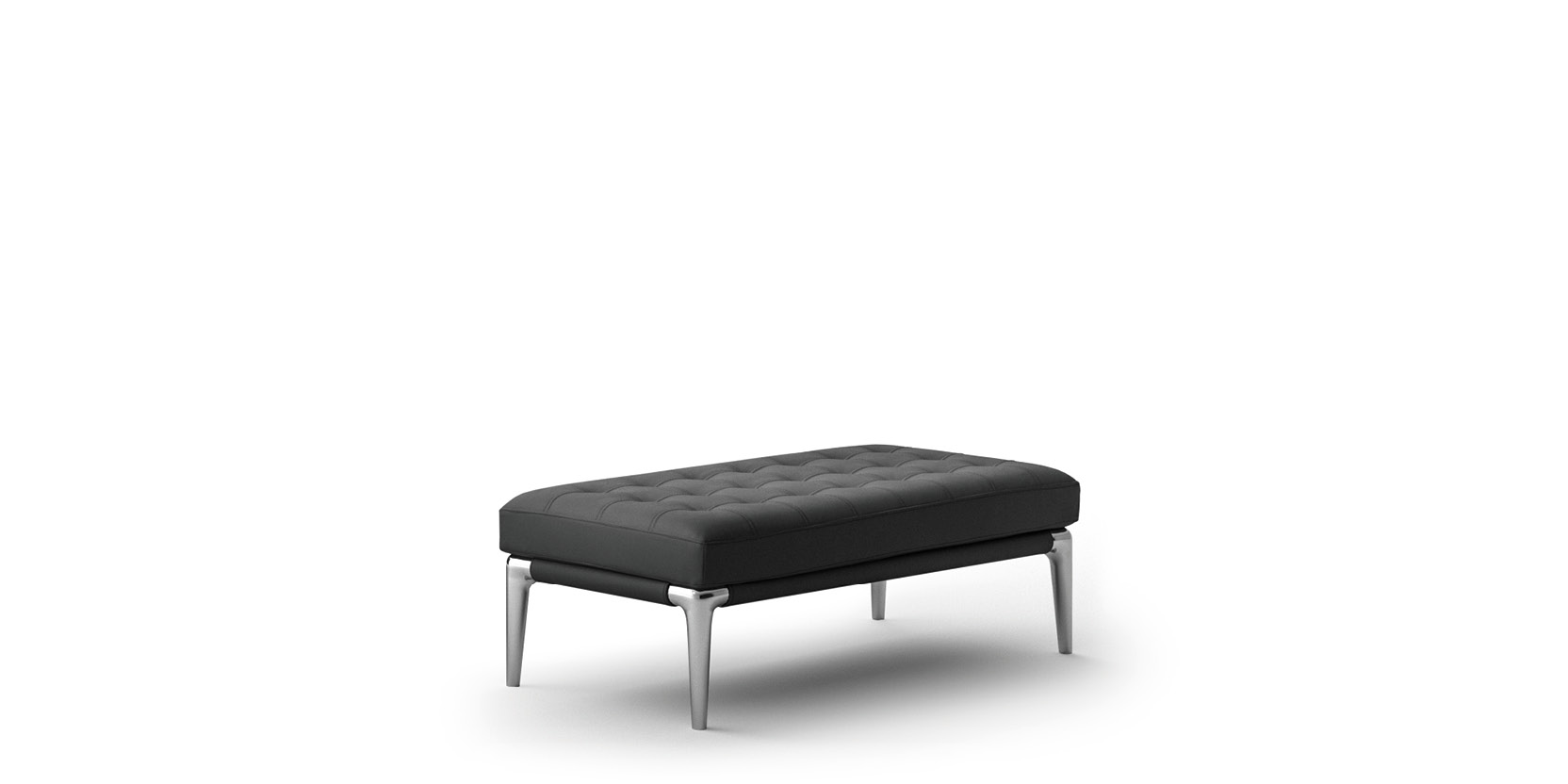 Скамья L26 Volage — проект Филиппа Старка, объединяющий современную эстетику и традиционные ремесленные техники. Основание выполнено из полированного алюминия, что придает конструкции визуальную легкость и прочность. Главный акцент сделан на сиденье с отделкой капитоне: стежка формирует объемный геометрический узор, характерный для классической мебели, но интерпретированный в современном ключе. В качестве обивки используют текстиль или натуральную кожу. Модель подходит для размещения в спальне у изножья кровати, в гостиной или просторном холле, дополняя интерьер функциональным элементом.