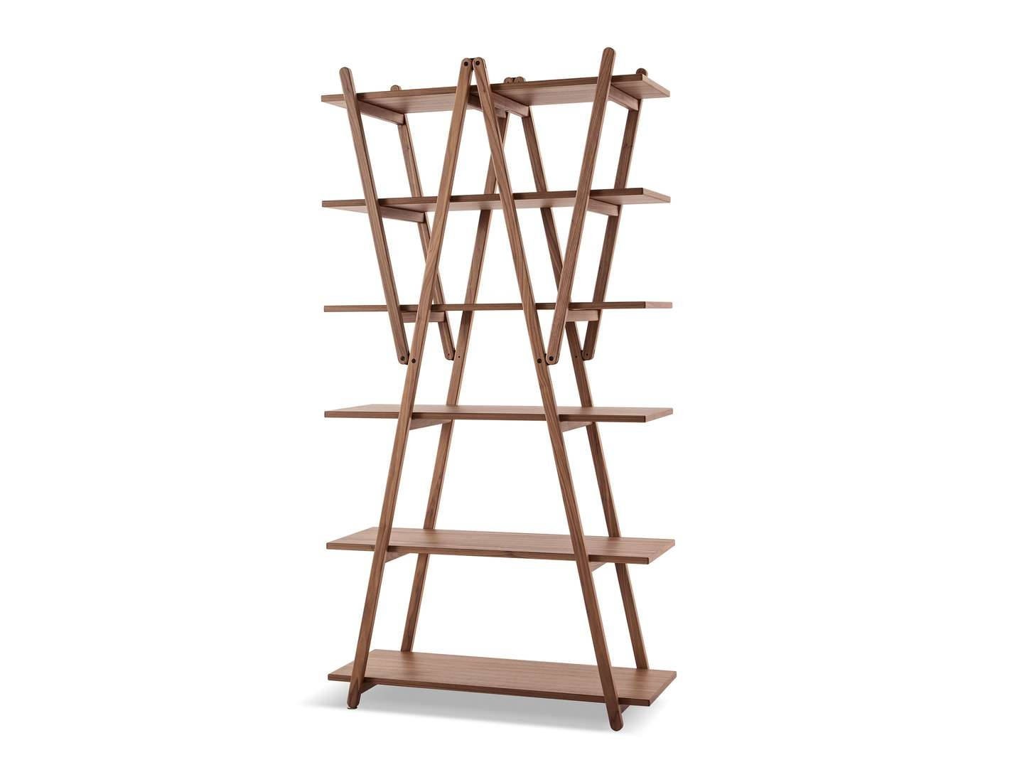 Стеллаж Nuvola Rossa, спроектированный Вико Маджистретти в 1977 году, стал результатом анализа конструкции классического книжного шкафа. Дизайнер упростил структуру, устранив боковые стенки и оставив только несущие диагональные элементы. Такой подход придал модели 114 визуальную легкость и превратил функциональный предмет в графичный элемент интерьера. Главная особенность модели — складной механизм, который упрощает транспортировку и перемещение мебели. Четыре центральные полки снимаются, что позволяет адаптировать пространство для высоких книг или предметов декора. Благодаря открытой структуре Nuvola Rossa часто используют как перегородку для зонирования комнаты: стеллаж пропускает свет и не загромождает пространство. Изделие выполнено из натуральной древесины (массив бука или дуба) с качественным лаковым покрытием, защищающим поверхность от влаги и царапин. Мастера Cassina уделяют особое внимание шлифовке и подгонке деталей, обеспечивая плавную работу складной системы.