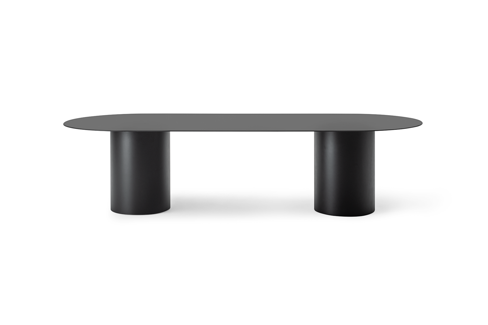 Опоры выполнены в виде двух широких цилиндров, облицованных алюминиевым листом. Внутри скрыта усиленная конструкция, которая гарантирует устойчивость стола без использования видимых перемычек. Мастера Desalto применяют сочетание автоматизированной обработки и ручной шлифовки, чтобы добиться точной геометрии стыков.