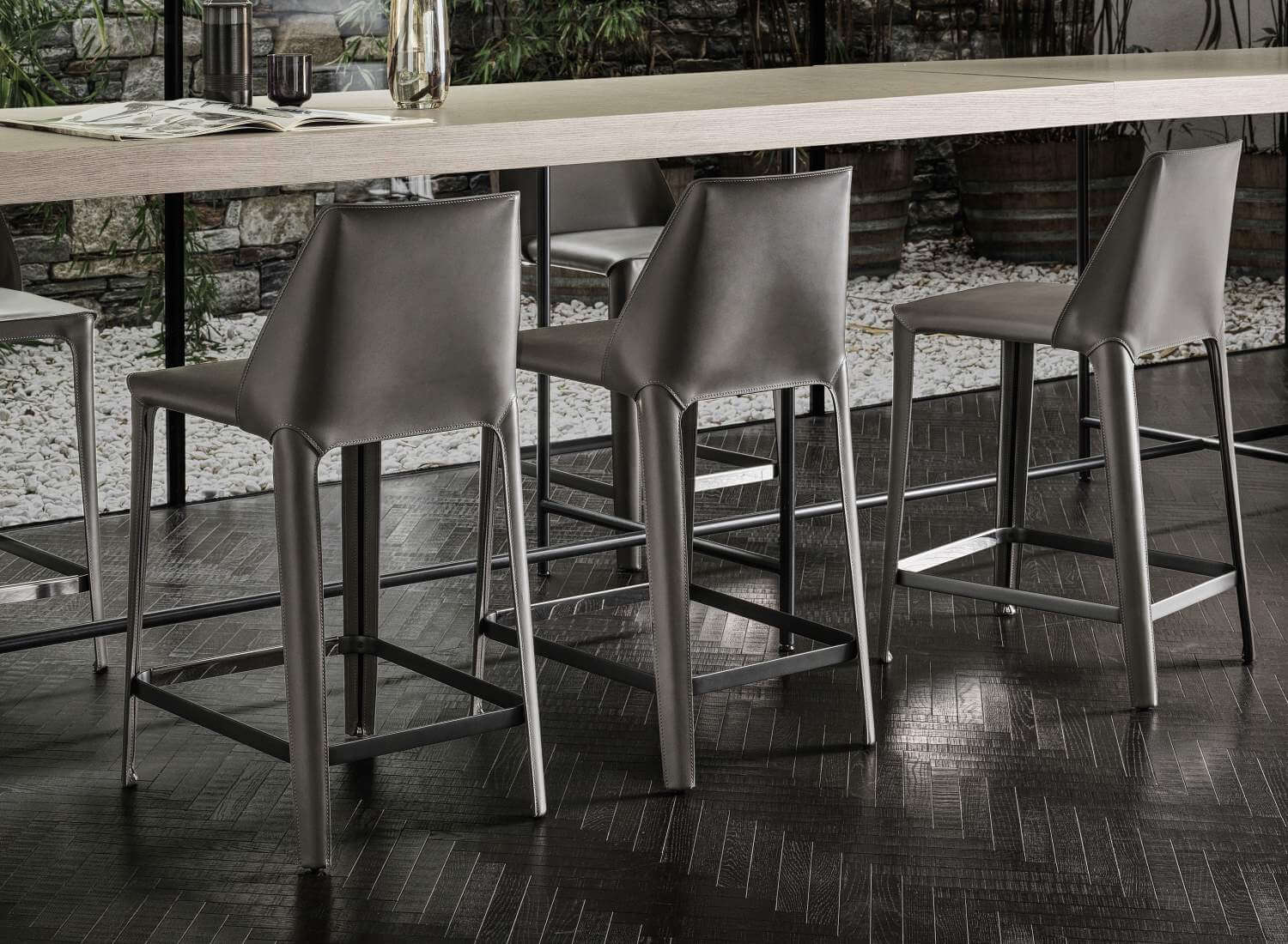 Ключевая особенность изделия — полная обивка натуральной кожей высокого качества, включая ножки. Кожа проходит тщательную обработку для сохранения естественной фактуры и мягкости, а со временем приобретает благородную патину. Чистые линии и отсутствие лишних декоративных элементов позволяют использовать Isabel в различных интерьерных сценариях: у кухонного острова, барной стойки или как дополнительное место в гостиной.