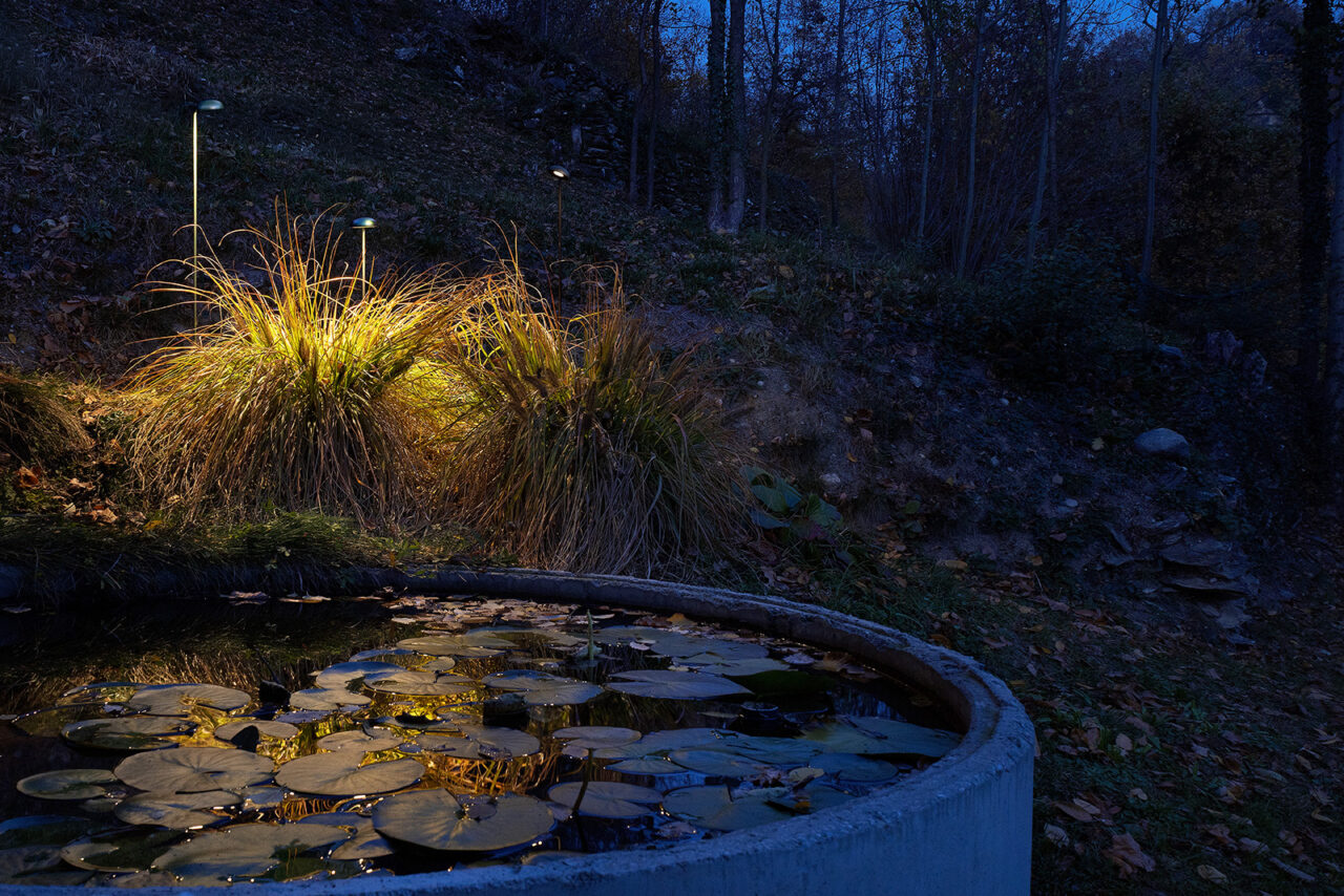 Уличный светильник Mirtilla от ILTI Luce — современное решение для ландшафтного и архитектурного освещения. Оптический блок с микропризматическим экраном обеспечивает широкое рассеянное свечение 70°, создавая мягкий и равномерный свет. LED-источник мощностью 2,1W, цветовая температура 2700K, питание до 700 mA. Боковая регулировка ±30° позволяет точно направлять поток света. Установка на колышек, кабель 2 м. Корпус из алюминия и стали в отделке Cetonia green. Идеален для сада, дорожек и outdoor-проектов.