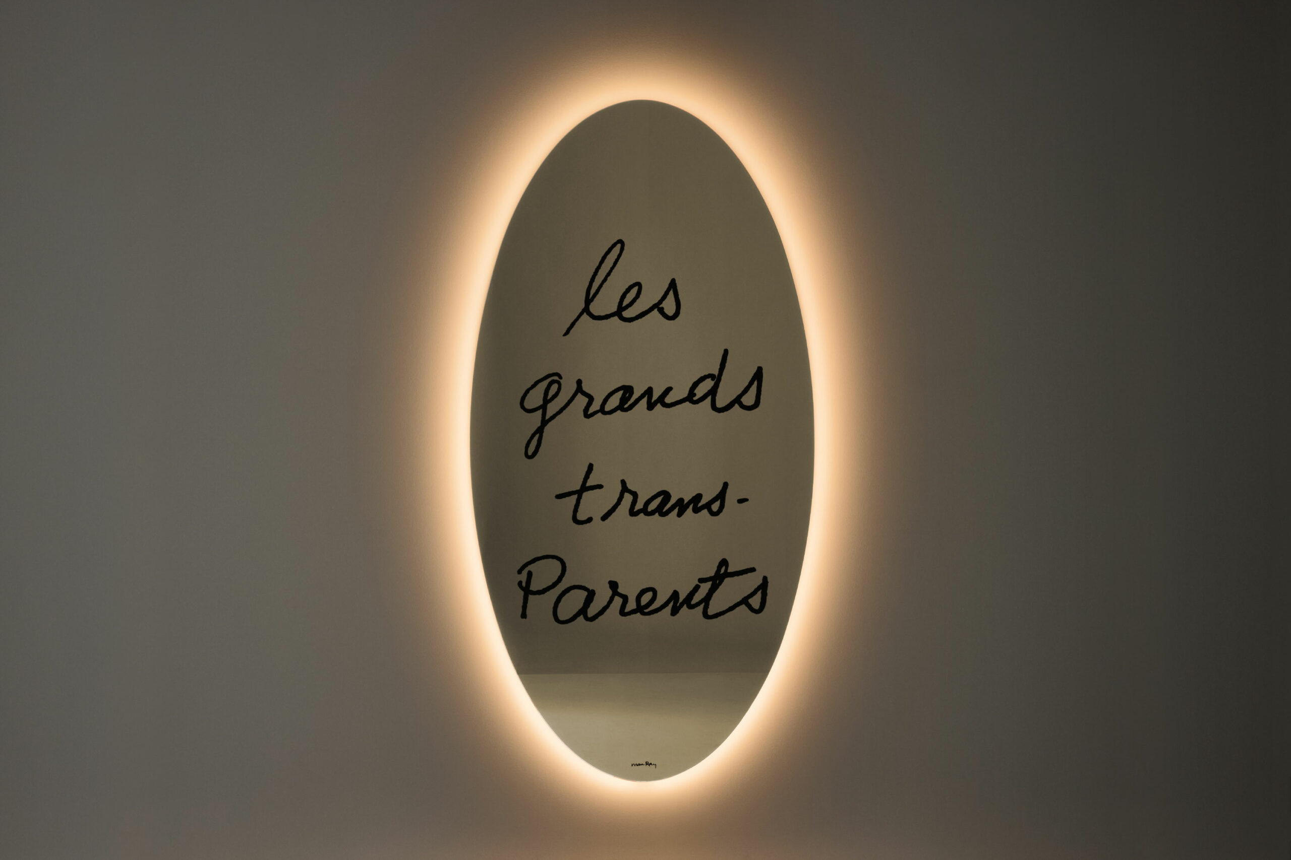 Зеркало Les Grands Trans-Parents входит в коллекцию Cassina I Maestri. Модель воспроизводит работу знаменитого художника-сюрреалиста Ман Рэя, созданную в 1938 году. На зеркальной поверхности эллиптической формы методом шелкографии напечатана надпись, обыгрывающая название предмета. Кромка выполнена из жесткого полиуретана черного цвета, что придает конструкции устойчивость и графичность. Cassina предлагает два варианта исполнения: стандартный и с задней светодиодной подсветкой, которая делает надпись более читаемой и добавляет глубину. Крупный формат высотой 181 см позволяет использовать модель как выразительный элемент интерьера, объединяющий функцию и художественный замысел.