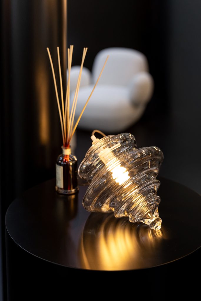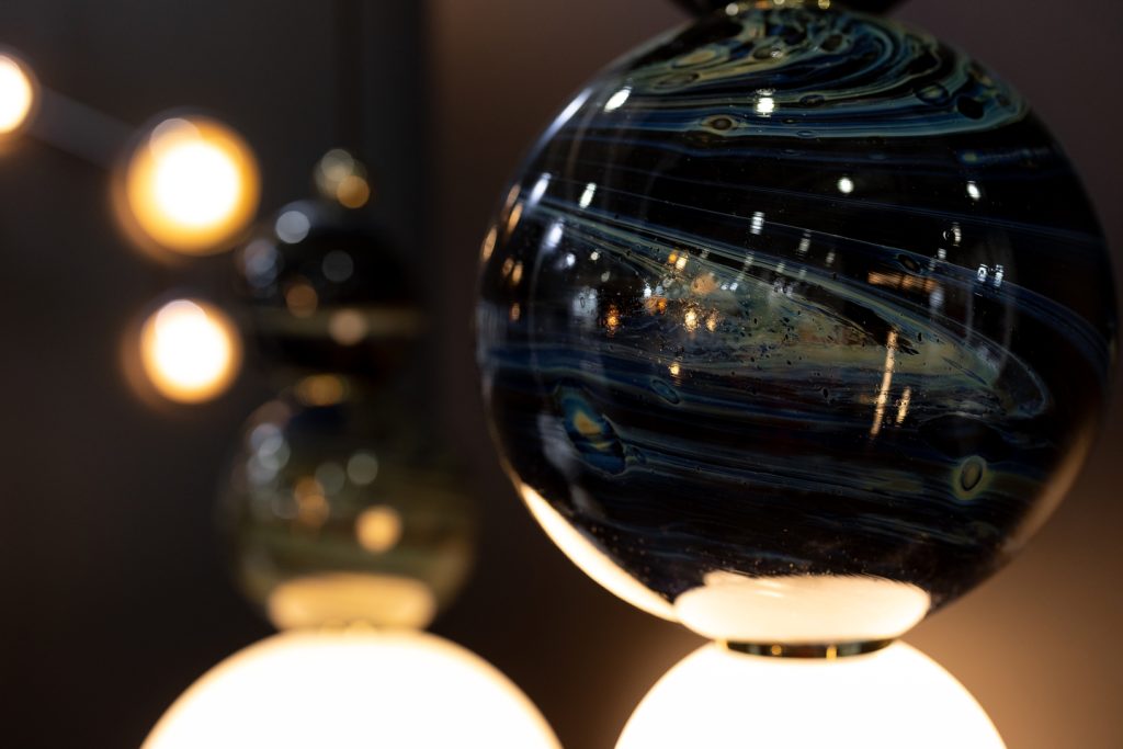 Spacey — текстурированное стекло сферической формы с мягкой световой глубиной.